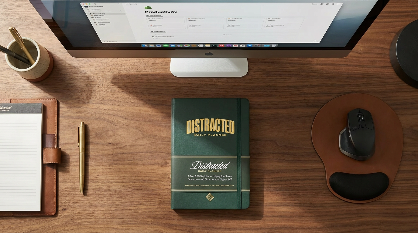 The Distracted Daily Planner is a no-BS system designed for creatives with ADHD who feel overwhelmed, scattered, and stuck. Simple structure, clear priorities, and just enough guidance to help you focus, follow through, and actually finish what you start.